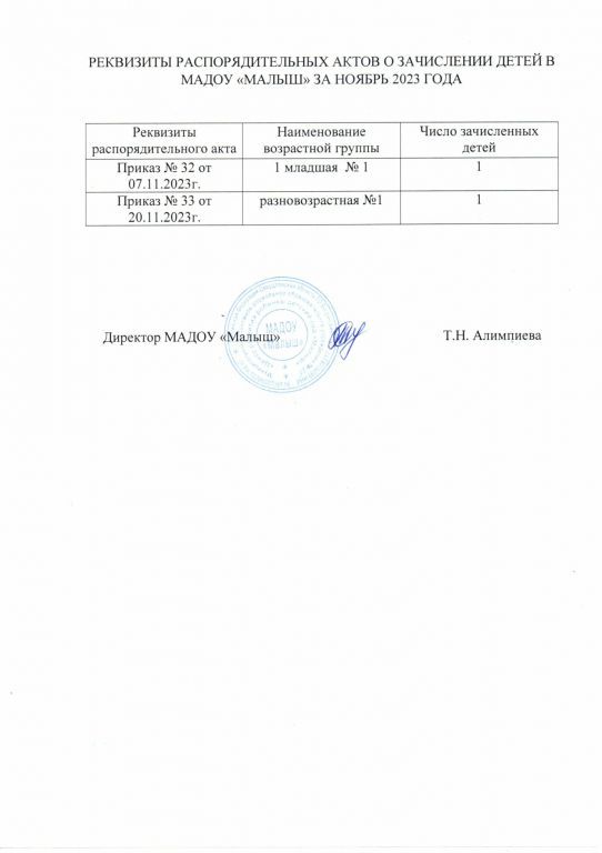 Реквизиты распорядительных актов ноябрь 2023 год (скачать) (посмотреть)